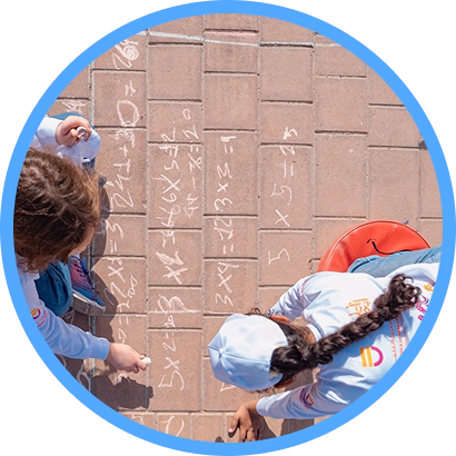 Street Maths Day is held in safe, open-air spaces where students solve mathematical tasks directly on the ground using chalk and simple tools.